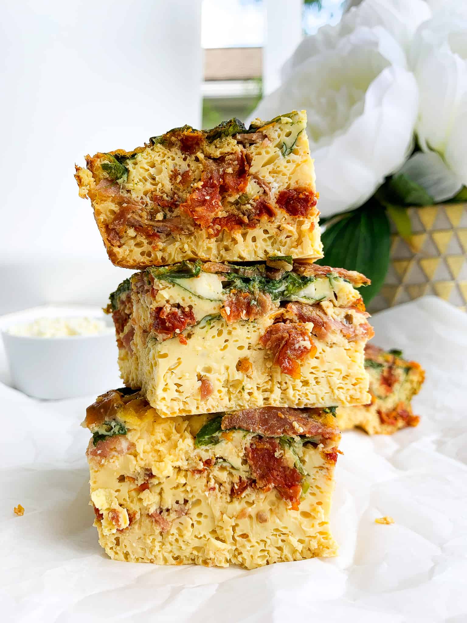 - Healthy High-Protein Egg Bake Casserole with Ham, Feta, Spinach and Sun-dried Tomatoes